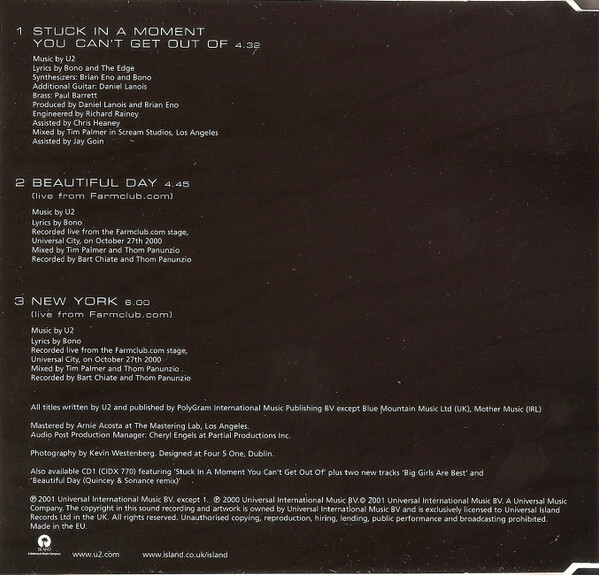 | 1 | Stuck In A Moment You Can't Get Out Of | 4:32 |