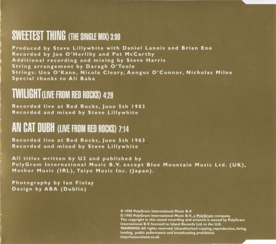 | 1 | Sweetest Thing (The Single Mix) | 3:00 |