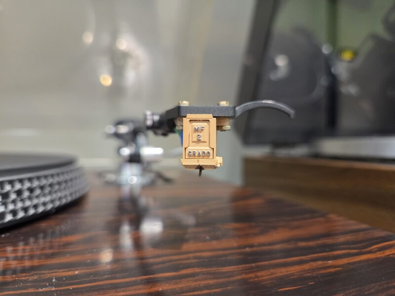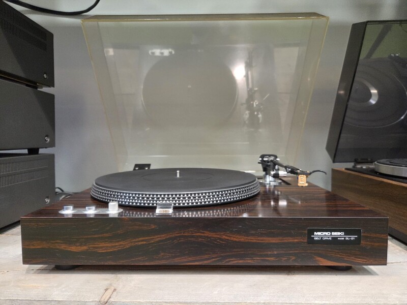 Micro Seiki BL-21 Draaitafel met Grado MF-2 element. Kap heeft wat gebruiksporen. Voor een meerprijs van €100,- geleverd met nieuwe kap.