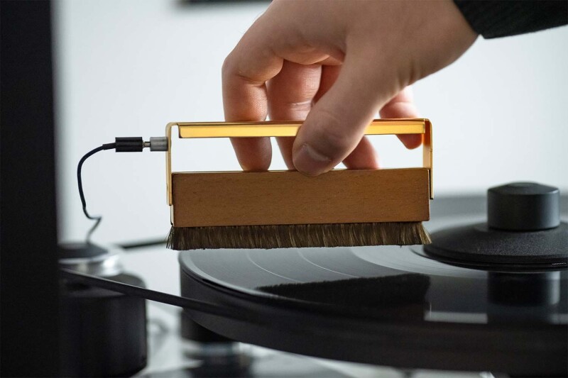 De borstel is voorzien van een aardingskabel, waardoor uw platen volledig antistatisch worden behandeld.