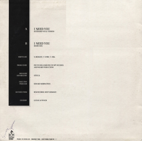 | B | I Need You (Radio Mix) | 4:31 |